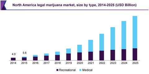The global legal cannabis market reached USD 7.7 billion in 2017, and with growing consumer demand and the increasing legalisation of marijuana in various countries, that figure is expected to rise to more than USD 146.4 billion by the end of 2025. Additionally, high investment in research and development for safer forms of using cannabis (such as tinctures, oils, and lotions) are expected to positively reinforce market growth.
