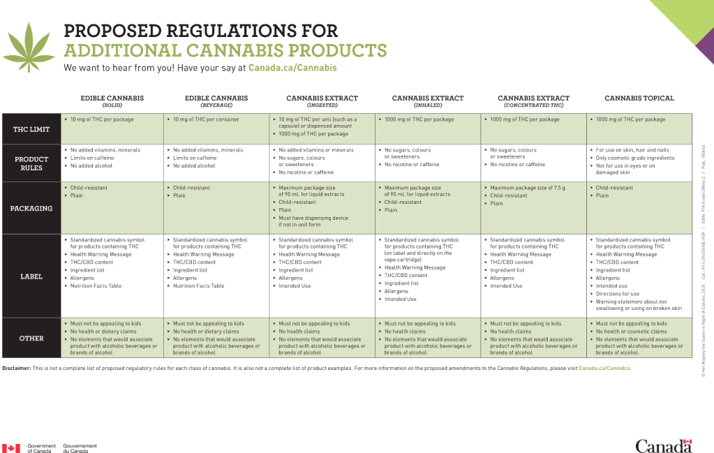 - There are also several stipulations pertaining to the packaging, including that packages must be child-resistant and must not appeal to children. The products must also not be marketed in a similar manner to regular confectionery products.