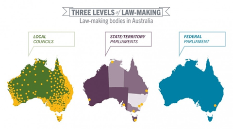 There are six state and two mainland territory parliaments. These parliaments make laws for states and territories. - Local Councils